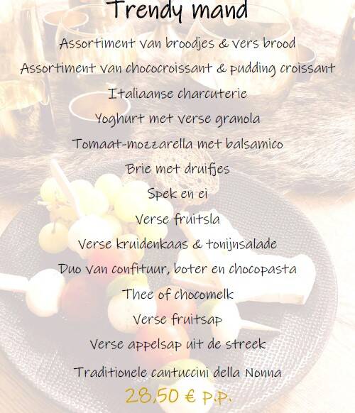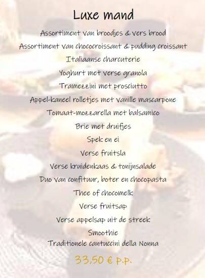 Tijdens feestdagen / speciale gelegenheden zoals moederdag, vaderdag, valentijn, ... bieden we een speciaal ontbijtmenu aan.